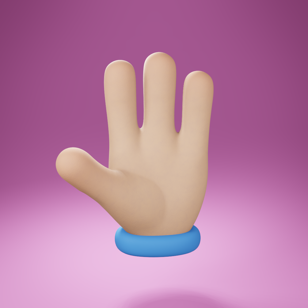 A rigged toon hand with three fingers